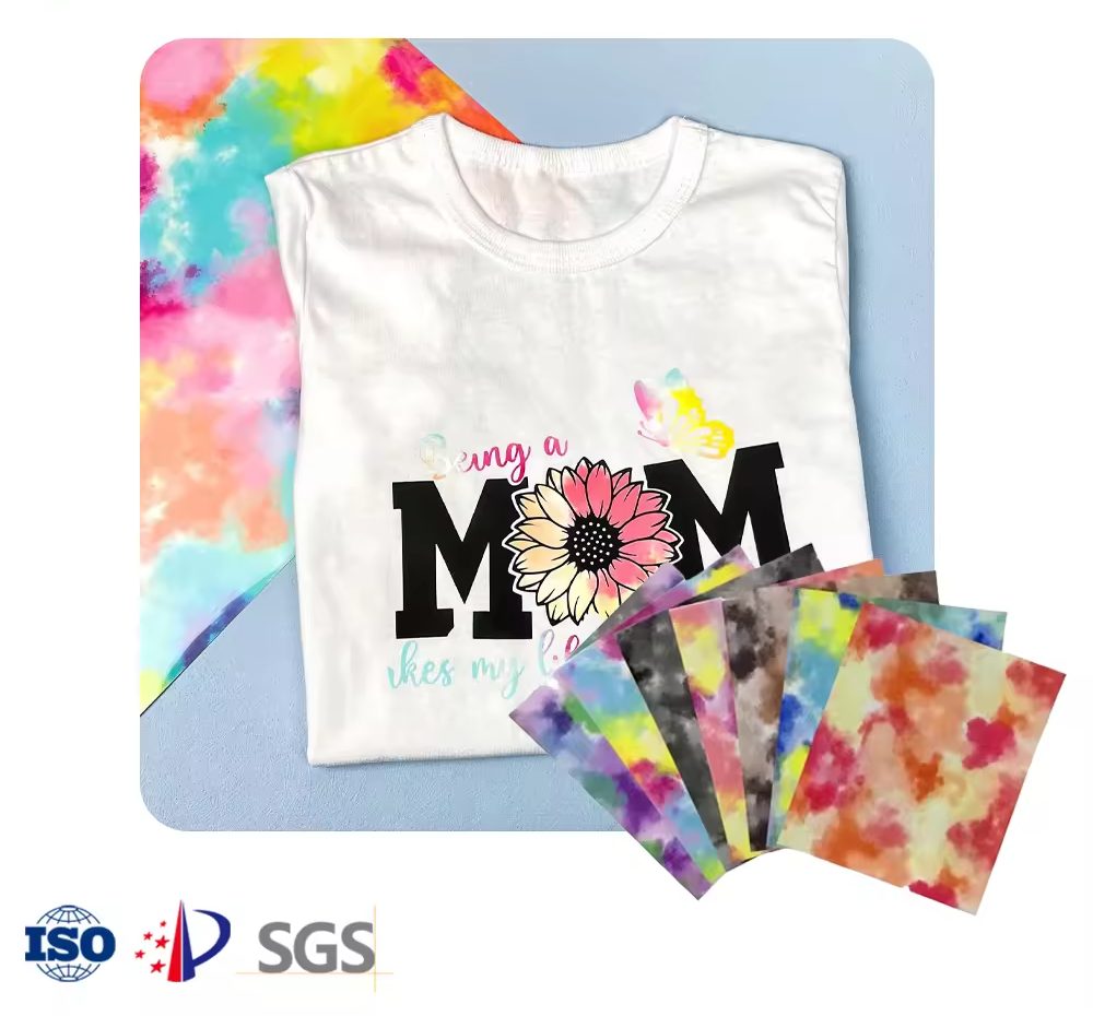 Trendy Tie-dye Texture Colorful Heat Transfer Film DIY Pattern Printing Ironing on Cotton Clothing